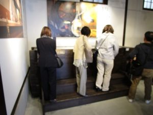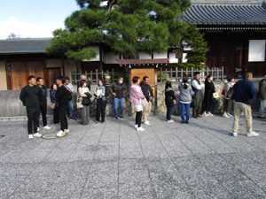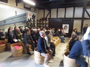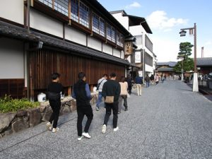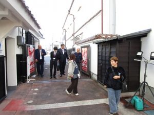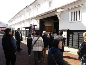 まずは、西条酒造通りで酒造見学です。歴史ある街並みを散策と、日本酒の工程を熱心に見学して頂きました。